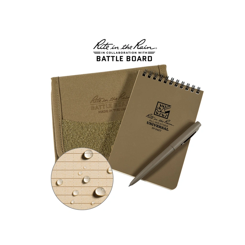 The left writing panel houses a Metal All-Weather Pen loop and a 3" x 5" Polycarbonate scratch-resistant window for checklists and itineraries. (INDEX CARDS NOT INCLUDED)