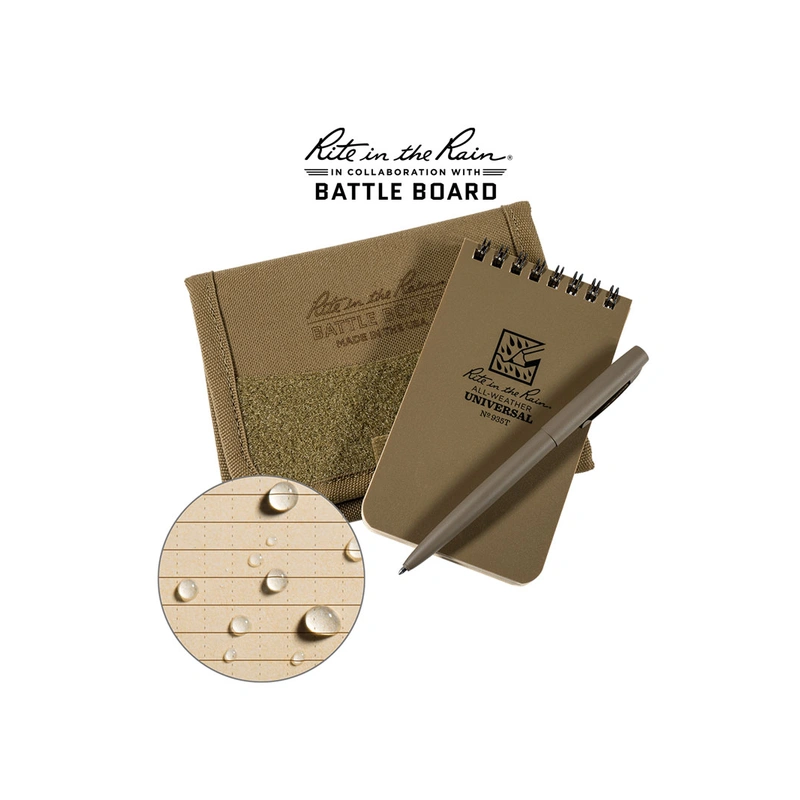 Keep your writing essentials organized with our Tri-Fold Notebook Kit. Kit Includes: Tri-fold Cover, Notebook, and All-Weather Pen. Each Item is Proudly Made in the USA.